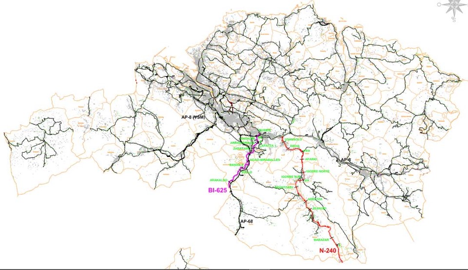En la carretera N-240 (Barazar) se activarán los 9 arcos free flow colocados entre la unión de El Gallo (p.k. 55) y Ubidea (p.k. 23) conforme a la siguiente tarifa (IVA incluido) al paso por los puntos de control siguientes:
