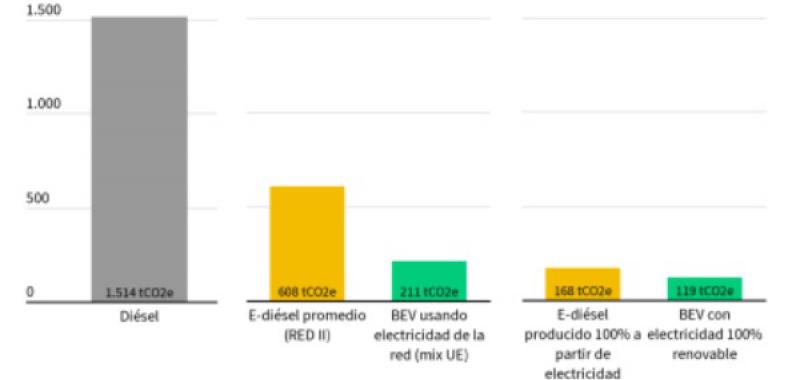 El uso de electrocombustibles en camiones emite más gases de efecto invernadero