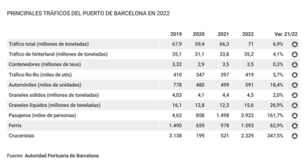 Aunque la autoridad portuaria de Barcelona reconoce la creciente atonía de la última parte del ejercicio, ya avanzaba recientemente que este había sido de récord en cuanto a tráficos: con un total de 70 millones de toneladas movidas, 2022 ha incrementado el resultado de 2021 en el 6,9%, y ha superado por primera vez el volumen de 2019, de 67,9 millones de toneladas. Así, la práctica totalidad de productos movidos aumentan sus porcentajes, aunque destacan especialmente los graneles líquidos y los automóviles, que marcan los crecimientos más importantes. En el primer caso, el director general de la autoridad portuaria, José Alberto Carbonell, ha destacado el papel del gas natural licuado (GNL), cuyo movimiento a través de Barcelona se ha incrementado en el 34,5% “como consecuencia del corte del gasoducto que unía Marruecos con la Península Ibérica”, disparando las importaciones de las plantas de GNL regionales, y “por otro lado, las obligaciones de carácter estratégico europeas, que obligaba a almacenar un volumen importante de GNL” como derivada de la crisis en Ucrania y las sanciones a Rusia.