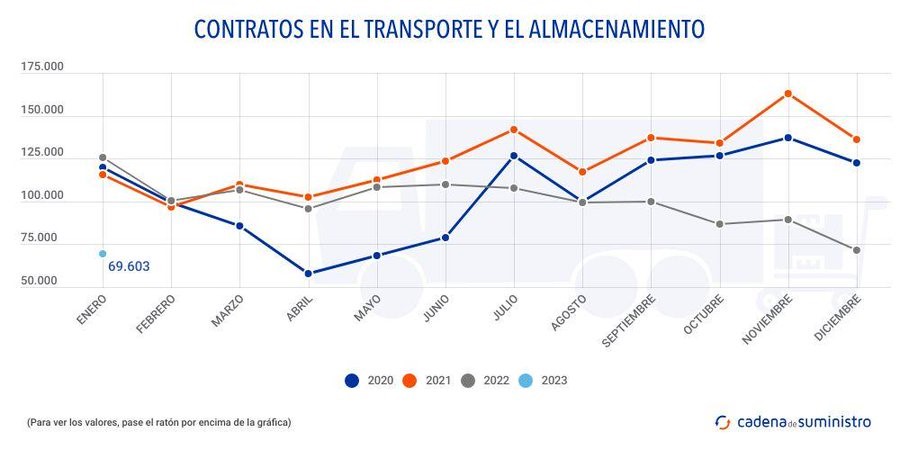 Así pues, durante el pasado mes de enero se han registrado 69.603 contratos de trabajo nuevos en el sector del transporte y la logística, un 44,68% menos que en el mismo mes de 2022, así como un 3,01% menos que en diciembre del año pasado.