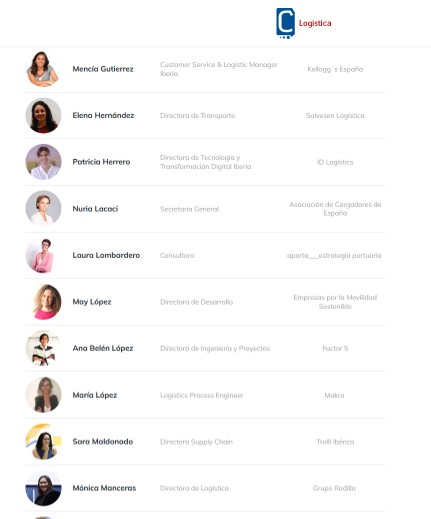 Con motivo del Día Internacional de la Mujer, el equipo del Área Logística de C de Comunicación -en colaboración con Nuria Fuentes, directora de comunicación y marketing de Usyncro-, ha querido elaborar un listado con los datos de las 75 mujeres más representativas del sector logístico en España. La lista, que no recoge a todas las logísticas que con su trabajo generan un gran impacto en el sector, ha sido creada con el fin de ser ampliada año tras año.