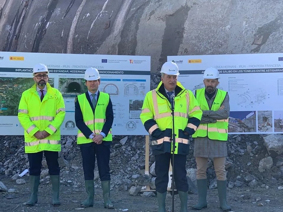 En su visita institucional a las obras del túnel de Gaintxurizketa destaca la inversión de 52,9 millones de euros, para adaptar el trazado actual de ancho ibérico a las circulaciones de alta velocidad en ancho internacional. Una obra de medio kilómetro se está utilizando una máquina escudo que, por primera vez en Europa, compatibiliza las obras y el tránsito de las circulaciones ferroviarias en vía única.