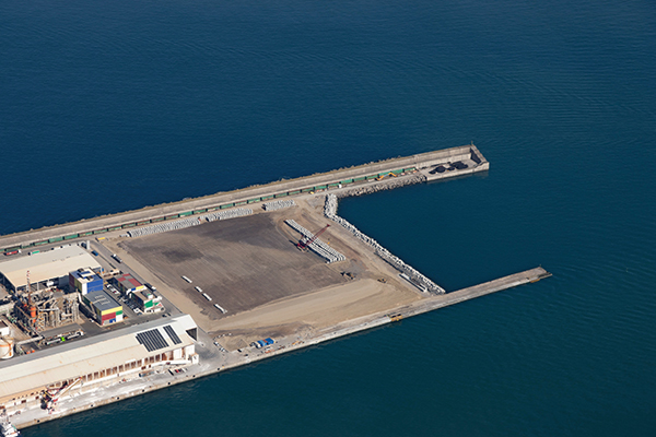 Como ya adelantó este periódico, para completar esta nueva superficie ha sido necesaria la construcción de cinco cajones de hormigón armado de 50 metros de largo, 17 metros de ancho y una altura de 24 metros (equivalente a un edificio de 7 plantas) en una estructura flotante específica para ello, denominada cajonero. Estos cajones disponen de una serie de huecos por dentro para poder flotar y permitir ser transportados mediante remolcadores a su emplazamiento definitivo y fondeados sobre una banqueta de escollera previamente preparada en el lecho marino. Los cajones se rellenaron provisionalmente con agua y más tarde con arena para dejarlos fondeados de manera definitiva. Se han utilizado 750.000 metros cúbicos de arena, extraídos del fondo del mar mediante una draga de succión en marcha, y la mota de cierre quedó protegida de la erosión del mar mediante una capa de escollera y un manto de bloques de hormigón.