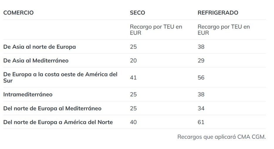 Los importes de los recargos se revisarán trimestralmente, y primer trimestre de 2024 se basan en una media de 80 euros por tonelada de CO2.