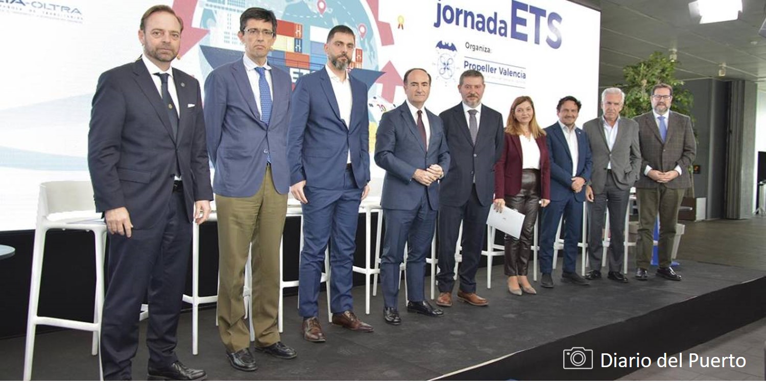 Marcos González, adjunto a la Dirección General de la Comisión DG Clima B.4, cerró la puerta ayer a una moratoria en la entrada en vigor del ETS, algo que demandaron ayer los principales representantes del sector marítimo y portuario nacional durante una jornada organizada por Propeller Valencia, asociación de empresarios y directivos logísticos, en la que intervinieron Alfredo Soler, presidente de Propeller Valencia; Manuel Arana, director de Planificación y Desarrollo de Puertos del Estado; el propio Marcos González Álvarez; Gerardo Landaluce, presidente de la Autoridad Portuaria de Bahía de Algeciras; José Luis Romero, secretario general de ANESCO; Gracia Cicuéndez, responsable de Estudios Económicos de Cámara Valencia; José Boix, Branch Manager COSCO Shipping Lines Spain; Antonio Torregrosa, director general de la Fundación Valenciaport; y Carlos Ruiz Fonseca, secretario de la Comisión Economía Azul de CEOE.