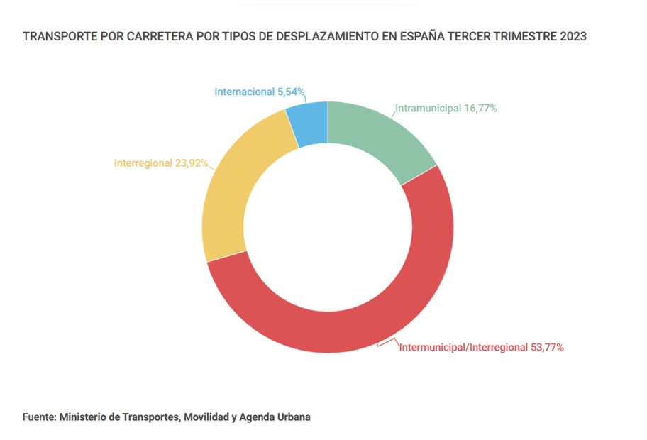 En lo que concierne al movimiento en función de si se trata de transporte público (de empresas a terceros) como privado (realizados por las empresas para sí mismas), ambos se han reducido. El transporte público ha logrado el 2,3% menos de volumen que en el mismo trimestre de 2022, y también queda por debajo del segundo trimestre de este año. En ello ha tenido un impacto especial el transporte intramunicipal, que se contrae el 3,45%. En el caso del transporte privado, tampoco se ha movido más volumen que en el segundo trimestre del año, 51,7 millones de toneladas por los 57,2 millones de entonces, y queda muy por debajo del mismo trimestre de 2022 (-8,15%). La modalidad intermunicipal e intraregional es la que tiene una mayor cuota de mercado, y la que más cae intertrimestralmente en el ámbito del transporte privado, de 36,8 millones de toneladas a 31,1 millones.