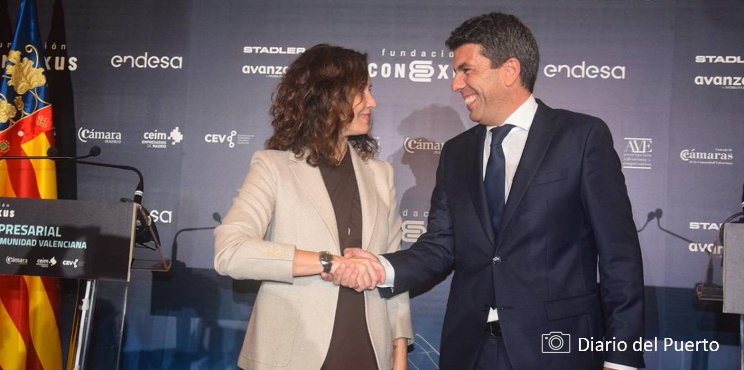 Asimismo, la II Cumbre Empresarial Madrid-Valencia sirvió para destacar que la colaboración entre estas regiones, además de ser beneficioso para las mismas, es “muy favorecedor para el conjunto de la economía española”, ya que cuentan con el Aeropuerto de Madrid, por donde pasa el 55% de la carga aérea nacional. y el Puerto de Valencia, el primero del Mediterráneo y el cuarto de Europa. “Queremos poner en marcha una gran plataforma de proyección y de futuro de estas comunidades autónomas con mentalidad de crecimiento y de entorno liberal y desde la coordinación y la competencia leal”, apuntó Mazón.