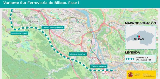 El Ministerio de Transportes y Movilidad Sostenible ha obtenido la Declaración de Impacto Ambiental favorable al estudio informativo de la variante sur ferroviaria de Bilbao (Fase 1). La infraestructura permitirá conectar el túnel de Serantes, ya ejecutado, con la línea Casetas-Bilbao y la nueva red ferroviaria en el País Vasco, facilitando un nuevo acceso al Puerto de Bilbao, lo que permite evitar el paso de dichos tráficos por los núcleos urbanos de la comarca del Gran Bilbao.