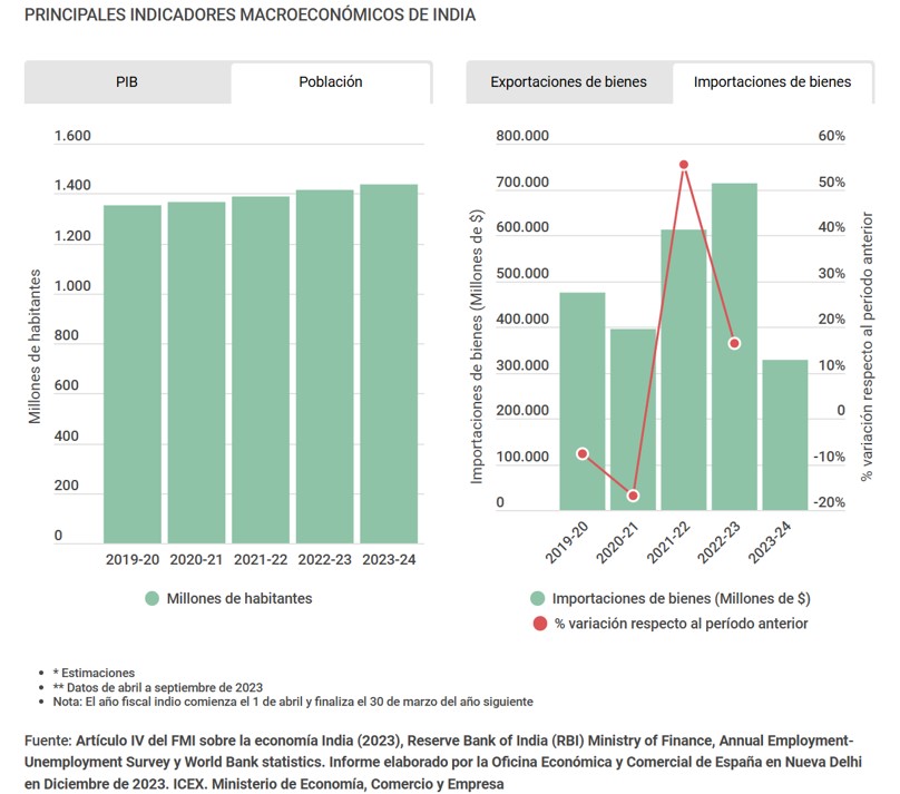 India ha sido en los últimos años una economía muy dinámica. Con un PIB de 3,2 billones de dólares, es la quinta economía mundial, superando ya en población a China. El transporte marítimo supone alrededor del 95% del comercio de India en términos de volumen y el 70% en valor (819.000 millones de dólares en el ejercicio fiscal del 1 de abril 2022 a 30 de marzo de 2023). En el año 2021-22, los puertos del país gestionaron más de 720 millones de toneladas. El 75% del tráfico es manipulado por las 12 mayores dársenas (de las 250 que tiene), siendo Madrás y Jawaharlal Nehru Port Trust los dos más importantes, según el ICEX. Estas cifras contrastan con la exigua flota mercante del país, que ocupa el puesto veintidós del ranking mundial de IHS Markit, con 9,3 millones de toneladas de arqueo bruto (GT), muy lejos de los 61,5 millones de GT de China.