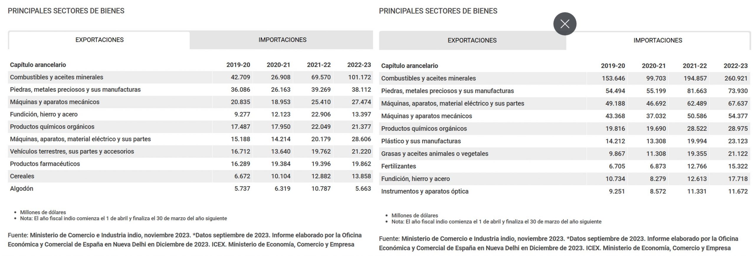Los principales clientes comerciales de India son EEUU, Emiratos Árabes Unidos, Países Bajos, China y Reino Unido, a quien vende combustibles, piedras, aparatos mecánicos, fundición, hierro y acero. El gigante de Asia del Sur es el segundo mayor extractor de carbón y el cuarto productor de hierro a nivel mundial, metal del que posee alrededor del 9,5% de las reservas del globo. Asimismo, es el tercer mayor fabricante de acero crudo y tiene la séptima mayor reserva de bauxita, según el ICEX.