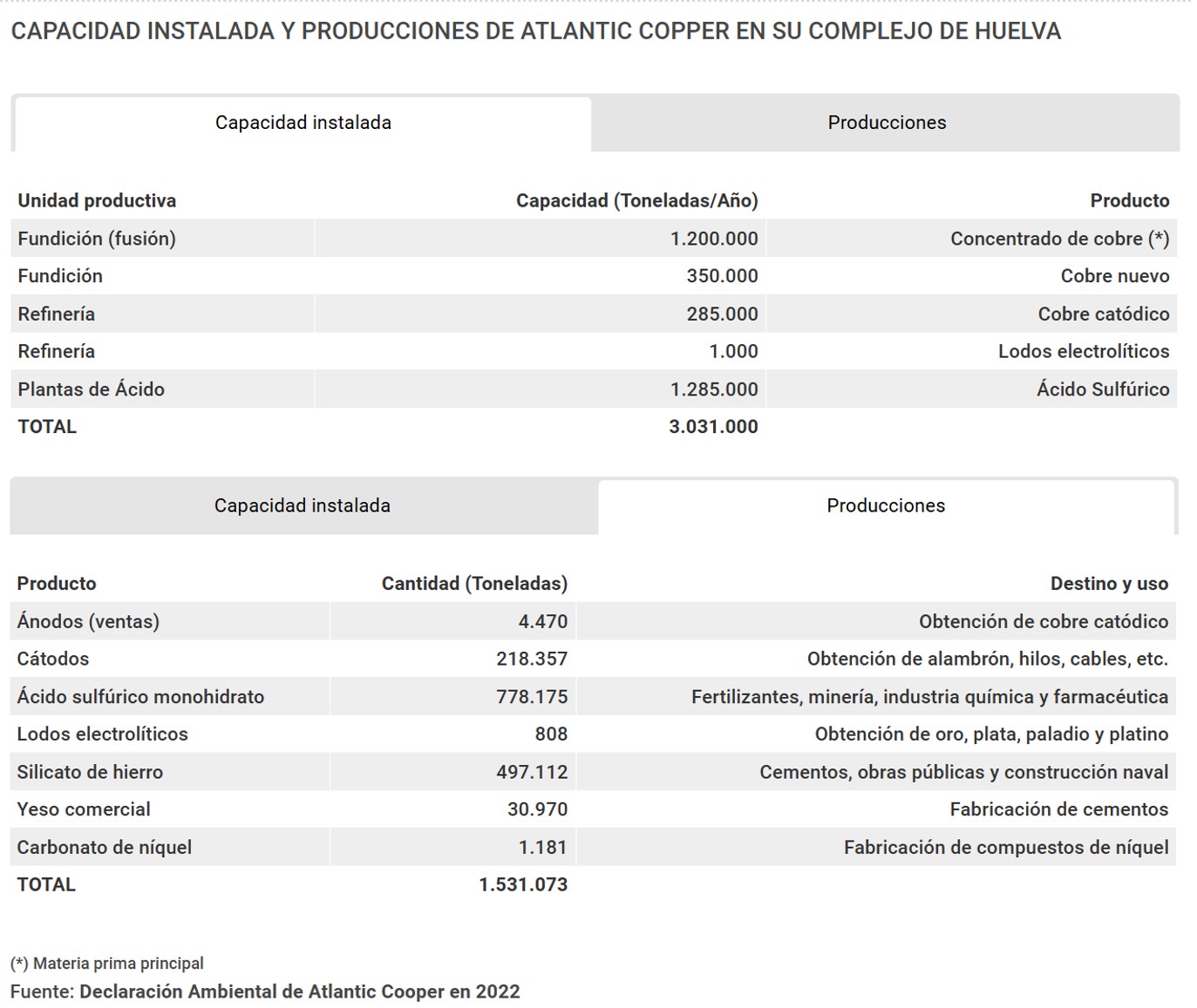 De hecho, su accionista Freeport-McMoRan, con sede en Phoenix (Arizona, EEUU) y cotizado en la Bolsa de Nueva York, es el segundo fabricante mundial de cobre, con minas en diferentes partes del globo. Además, lidera la producción de molibdeno [metal que se utiliza en la aleación de aceros] y es un importante productor de oro y cobalto.