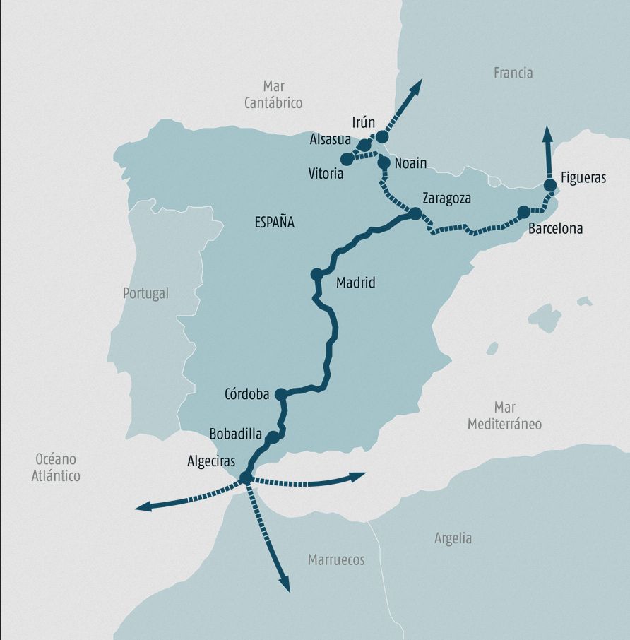 Además, la Oficina de Apoyo y Asesoramiento analiza la viabilidad socioeconómica de otros seis itinerarios en ancho ibérico: Tarragona-Barcelona, Madrid-Valladolid-Burgos-Vitoria, Murcia-Madrid, Cádiz-Madrid, Tamarite de Litera-Irún/Portbou y Zaragoza-Pamplona (Noain)-Vitoria (Júndiz).
