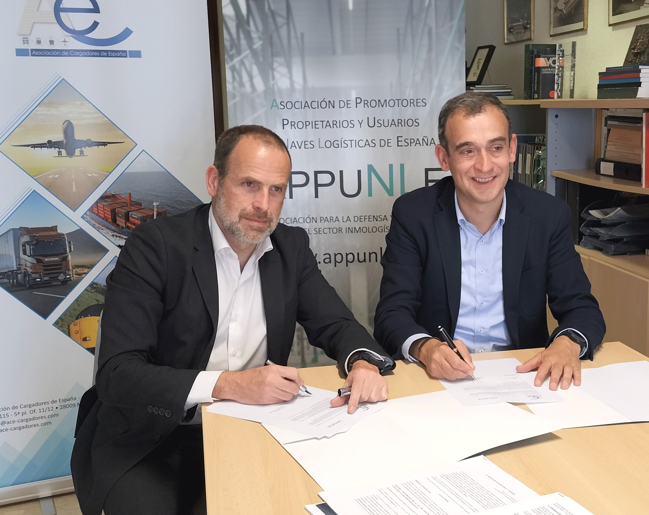 La Asociación de Cargadores de España (ACE) y la Asociación de Promotores, Propietarios y Usuarios de Naves Logísticas de España (APPUNLE) han suscrito un convenio de colaboración con el objetivo de fortalecer el sector inmologístico y mejorar la eficiencia en la cadena de suministro.