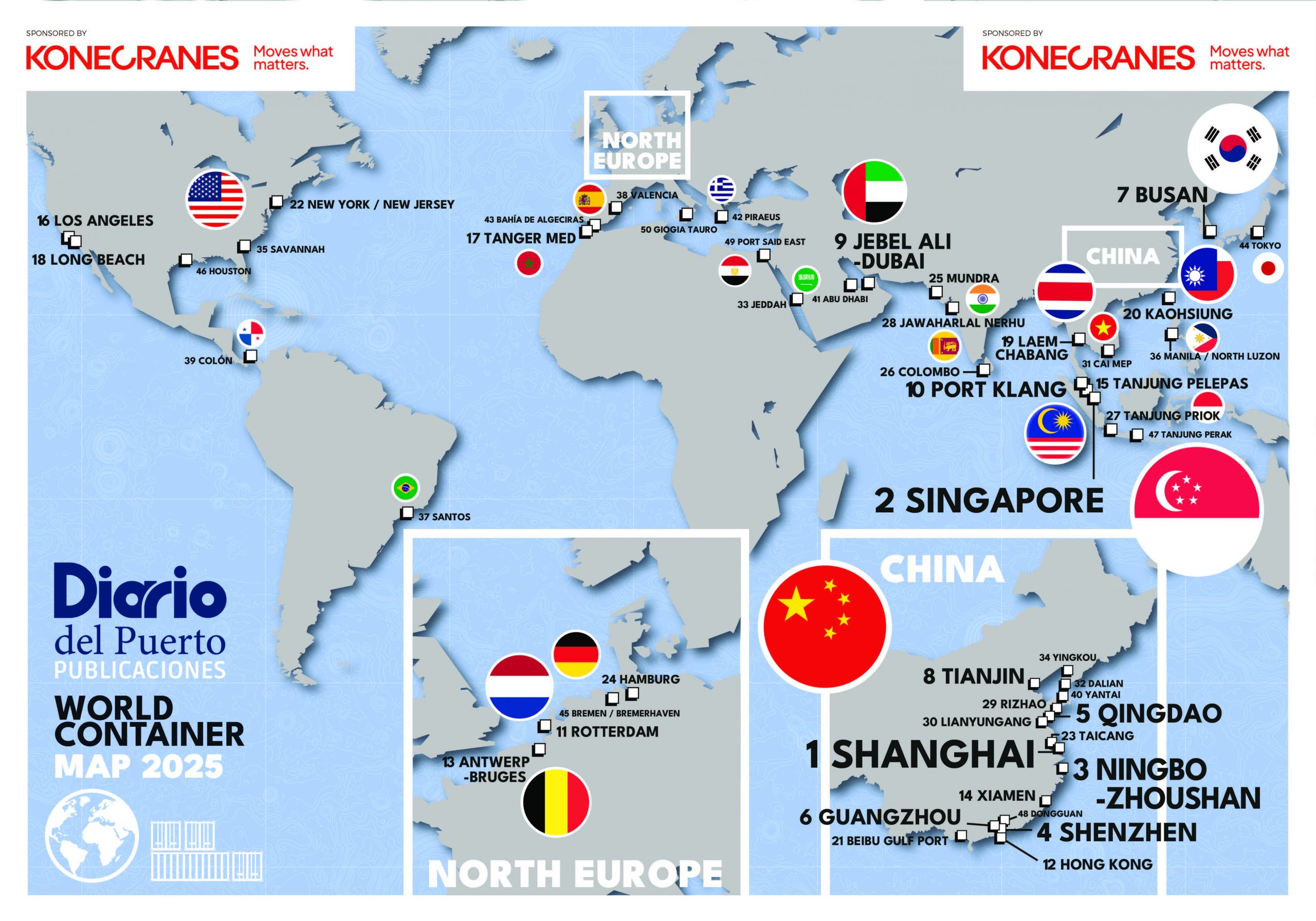 Esta es una de las principales conclusiones del World Container Map 2025, que acaba de publicar Diario del Puerto con los datos de tráfico del Top50 de puertos del mundo más importantes a nivel global y que muestran un comportamiento más que positivo a lo largo del año 2024.