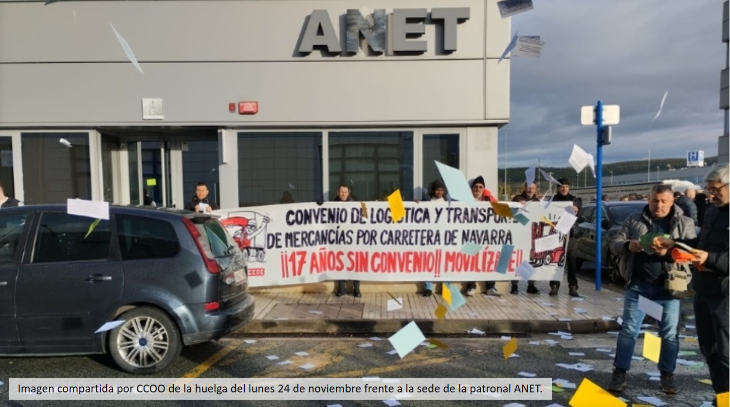 Los sindicatos que forman parte de la mesa de negociación del convenio del transporte de mercancías en Navarra –UGT, CCOO, ELA y LAB– han valorado “positivamente” la jornada de huelga que se celebró el 24 de noviembre, y han anunciado nuevos paros del 13 al 17 de diciembre, “sin descartar otras convocatorias si no se llega a un acuerdo en el convenio”, que lleva “17 años sin actualizar”.
