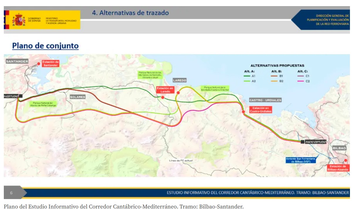Para poner en contexto, con fecha 7 de noviembre de 2025 se inició el proceso de información pública y audiencia a las administraciones del “Estudio Informativo del Corredor Cantábrico-Mediterráneo. Tramo: Bilbao-Santander”. El plazo inicial de 30 días para el trámite de información pública se ha prorrogado otros 15 días hábiles más (el máximo posible según la legislación vigente), habiéndose publicado esta ampliación de plazo en BOE de 11 de diciembre.