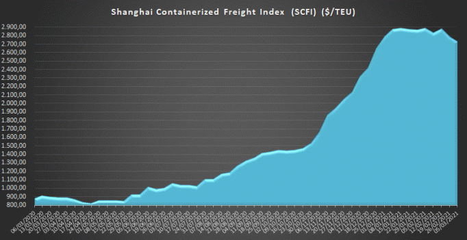 05/03/2021 ACE Aunque esta semana los fletes desde Shanghái marcan un descenso del 1,9%, el coste de traer un contenedor desde Shanghái, según contempla el Shanghái Containerized Freight Index (SCFI),…
