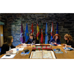 18/05/2016 REVISTA TRANSPORTE Y LOGÍSTICA El consejero de Fomento y Medio Ambiente, Juan Carlos Suárez-Quiñones, ha mantenido un encuentro en Ponferrada con la consejera de Infraestructuras y Vivienda de la Xunta de Galicia, Ethel Mª Vázquez Mourelle, la consejera de Infraestructuras, Ordenación del Territorio y Medio Ambiente del Principado de Asturias, Belén Fernández González, los presidentes de los Puertos de Aveiro, Joao Pedro Braga de Cruz, y del Puerto de Leixòes, Emilio Brògeira Dias como integrantes de la Macroregión RESOE (Regiones del Sudoeste de Europa) dentro de la Red Transeuropea de Transporte (Red TENT-T), encuentro en el que han estado acompañados por la alcaldesa de Ponferrada, Gloria Fernández Merayo.
