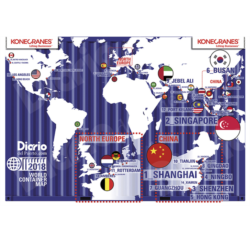 24/07/2018 DIARIO DEL PUERTO Diario del Puerto publica hoy una nueva edición de su “World Container Map”, que pone un año más de manifiesto el fuerte crecimiento mundial del tráfico portuario de contenedores, la pujanza imparable de los puertos chinos y del sudeste asiático, así como el fuerte crecimiento de la oferta portuaria de capacidad para este tráfico.