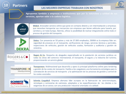 Agrupamos también a empresas e instituciones que por la naturaleza y calidad de sus
