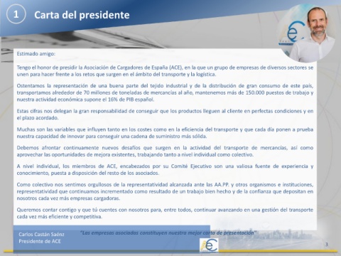 Tengo el honor de presidir la Asociación de Cargadores de España (ACE), en la que un grupo de empresas de diversos sectores se