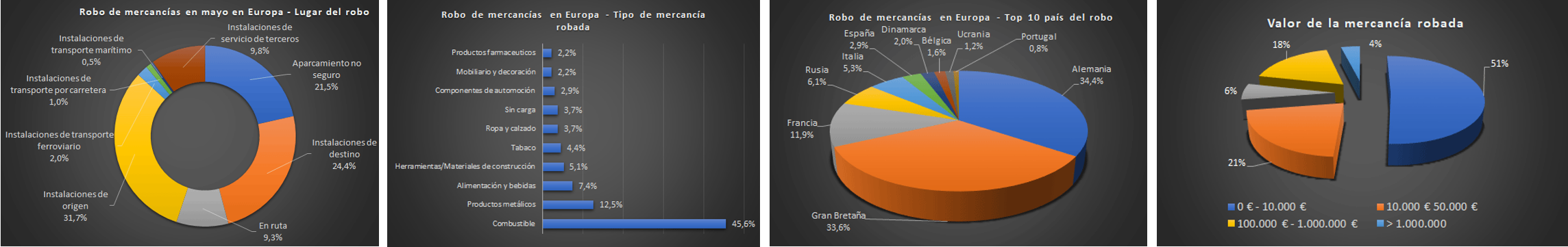 Los productos implicados con mayor frecuencia en los robos de carga a escala global en 2021, incluyeron productos agrícolas (12 %), alimentación y bebidas (14 %), materiales de construcción (9 %) y productos electrónicos (10 %). Significativamente, muchos de los materiales utilizados para producir los dos últimos, como el nitrógeno, el mineral de hierro, la madera, el acero y los semiconductores, han experimentado fuertes aumentos de precios desde el estallido de la pandemia mundial debido a la escasez, con el consiguiente aumento en el valor de los productos fabricados.