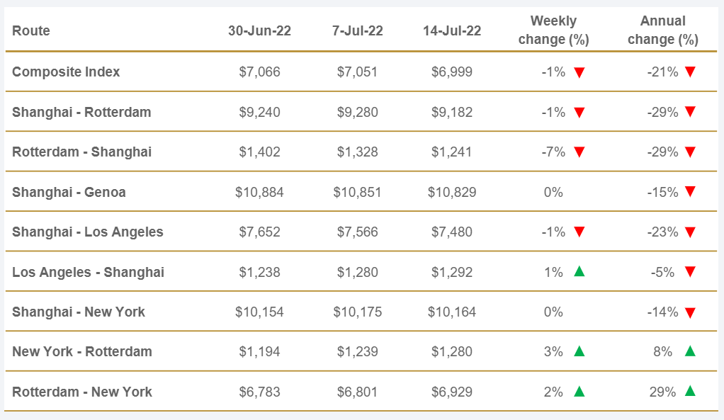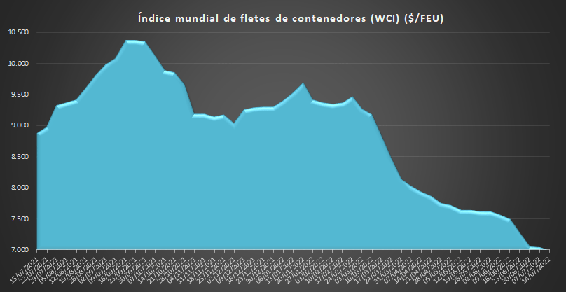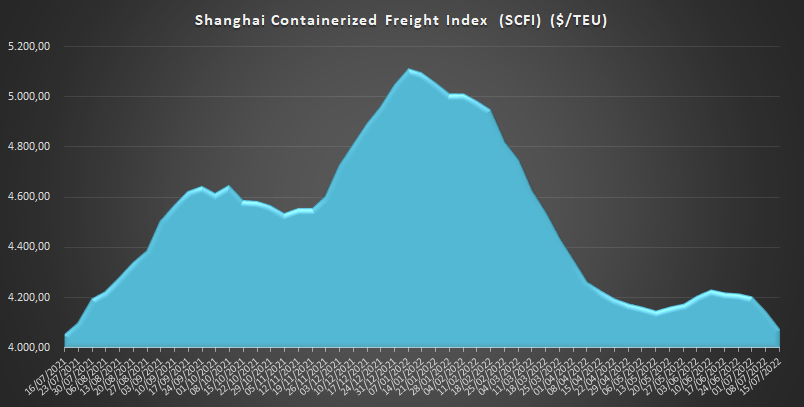 15/07/2022 ACE Con un valor de 4.074,70 $/TEU, los fletes desde Shanghái reflejan hoy un descenso del -1,7% respecto a la semana anterior, aunque todavía mantienen un incremento del 0,5% en comparación con el mismo periodo de 2021.