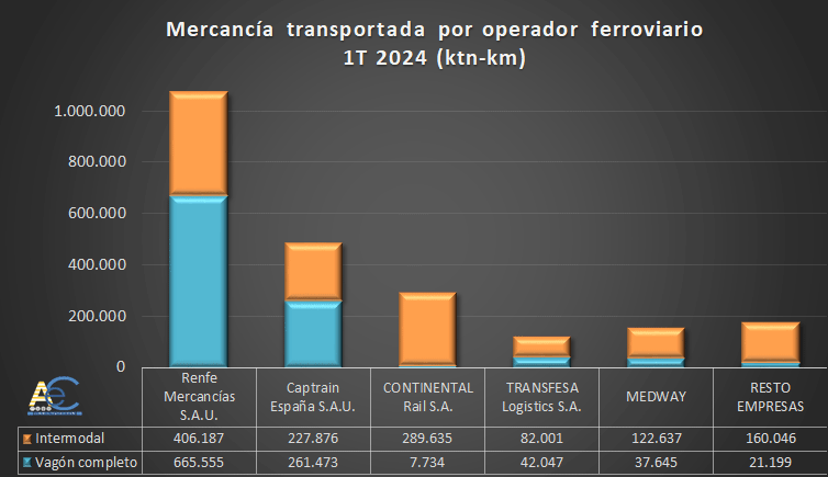 Mejora la actividad de transporte de mercancías por ferrocarril en el 1º T 2024